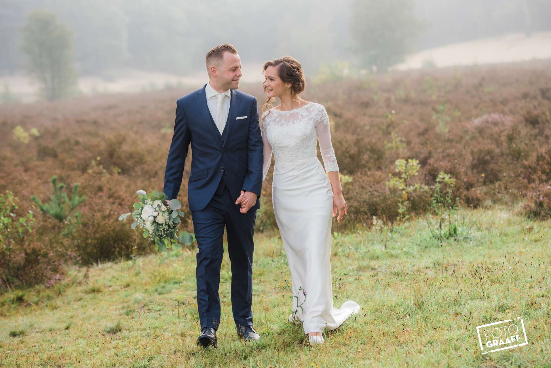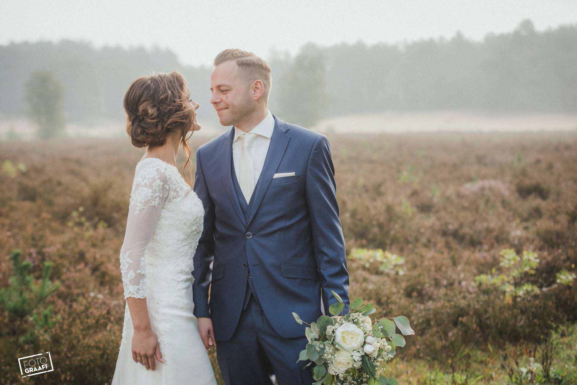 Jan Pieter & Lisanne hadden het geluk in het bos waanzinnig licht te treffen dat door de mist heen knalde. Als echt locatie fotograaf word ik daar ook echt blij van.
